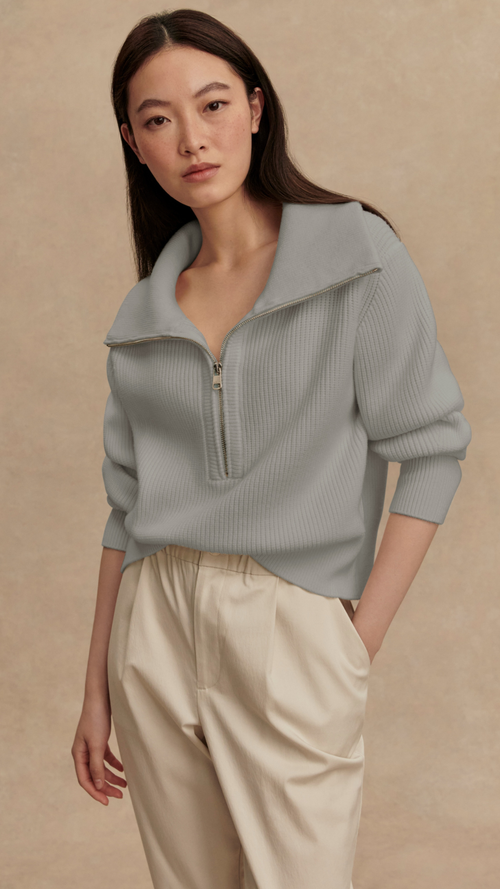 Maura Half Zip Rib Knit